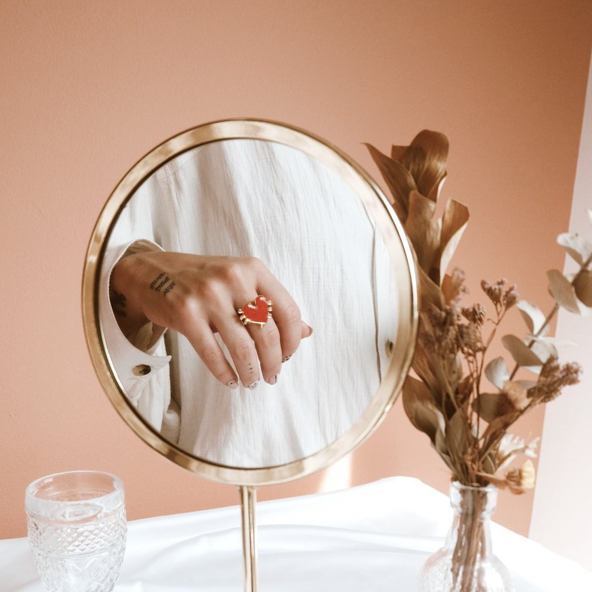 Anillo de corazón rojo