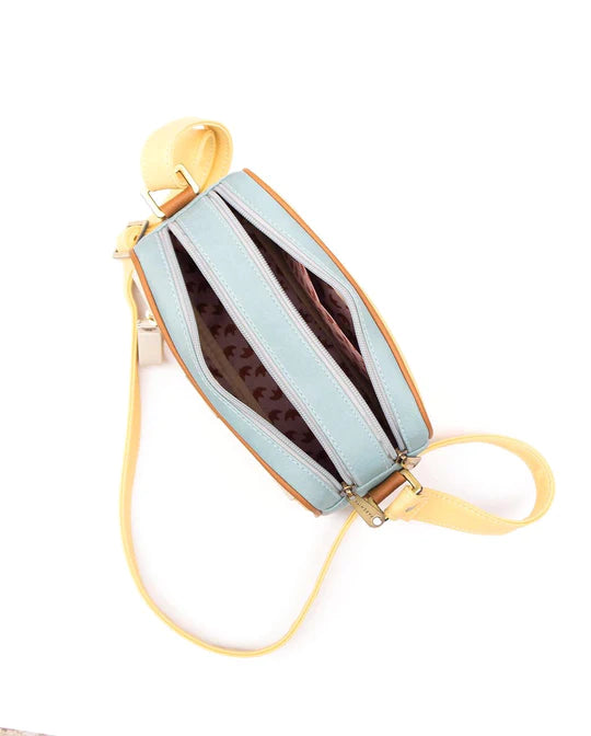 ¡Una bandolera siempre será una buena opción! Más cuando a su practicidad y comodidad se suma un diseño retro y colores que destacan su forma y detalles.