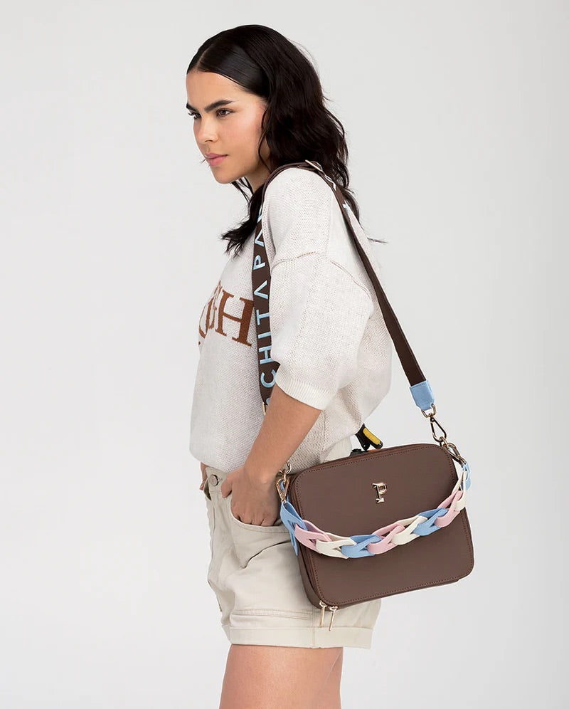 Con un diseño elegante, funcional y compacto, la cartera Flora es la elección perfecta para quienes buscan un accesorio práctico y sofisticado. Su tamaño mediano y bolsillos internos ofrecen el equilibrio ideal entre espacio y comodidad, garantizando organización y seguridad. Perfecta para llevar cruzada gracias a su correa ajustable con mosquetón removible, o en la mano con su asa de eslabones tricolor, esta billetera se adapta a tu estilo personal.